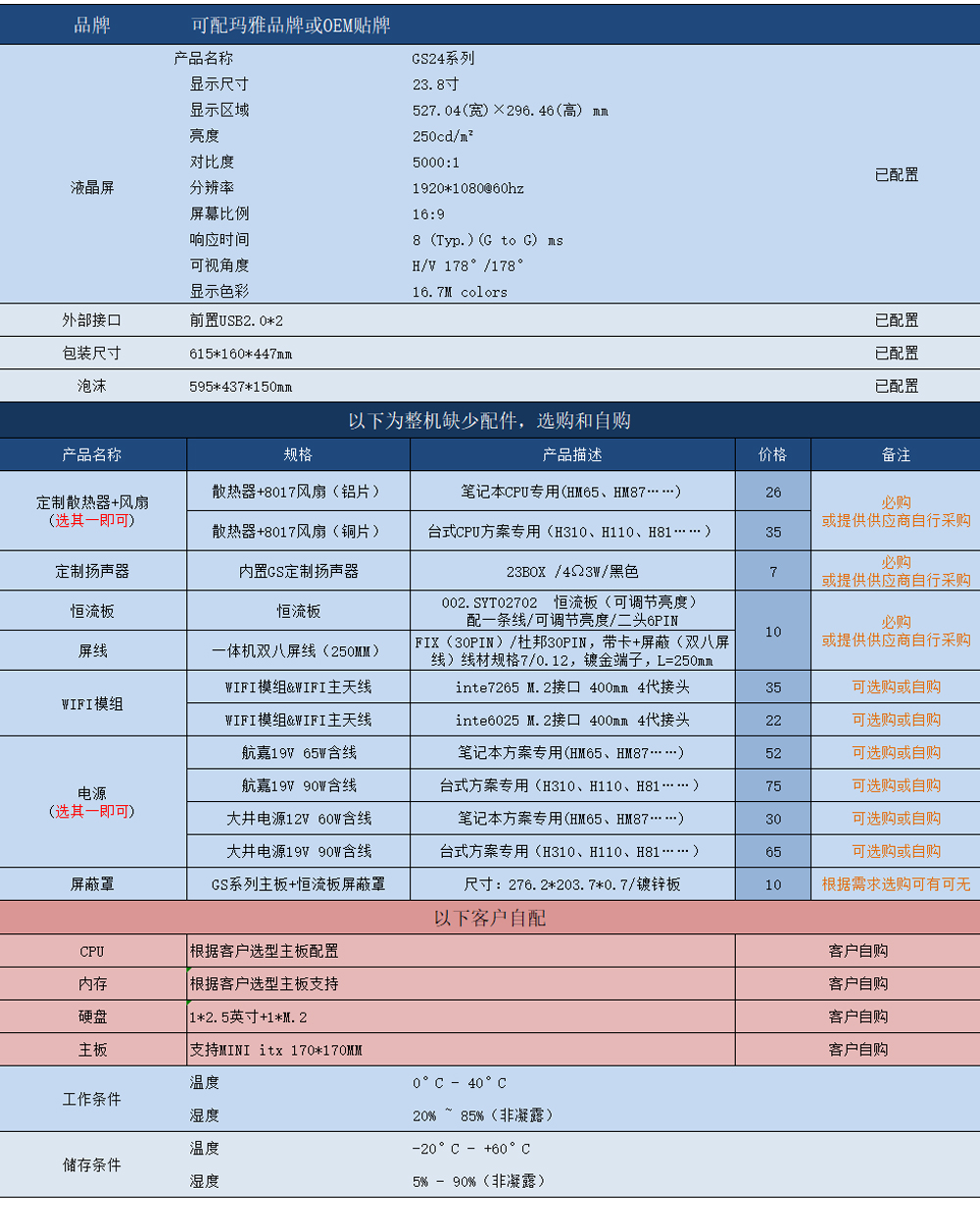 【白鯨Y系列】23.8寸一體機套件
